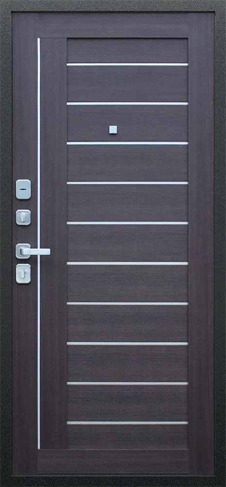 Надежная входная Дверь Соло орех рифленый премиум класса по цене 35 675 руб. Большая толщина стали защитит от проникновения в ваш дом, квартиру или коттедж. Используется очень качественная фурнитура: замки, цилиндры, ручки, защелки. Покрытие и отделка двери изготовлено под внимательным контролем производителя. Дверь имеет долгий срок службы и гарантию.