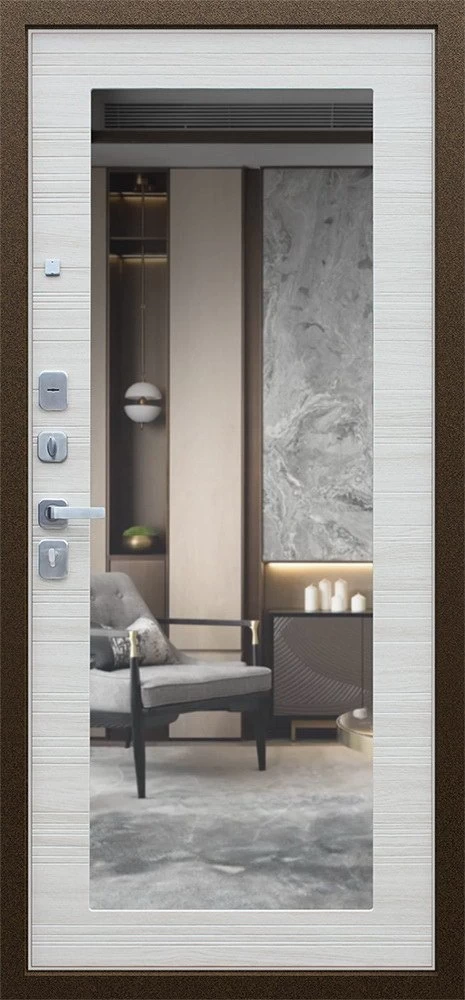 Надежная входная Дверь Спартак с зеркалом Акация Светлая Поперечная премиум класса по цене 36 475 руб. Большая толщина стали защитит от проникновения в ваш дом, квартиру или коттедж. Используется очень качественная фурнитура: замки, цилиндры, ручки, защелки. Покрытие и отделка двери изготовлено под внимательным контролем производителя. Дверь имеет долгий срок службы и гарантию.
