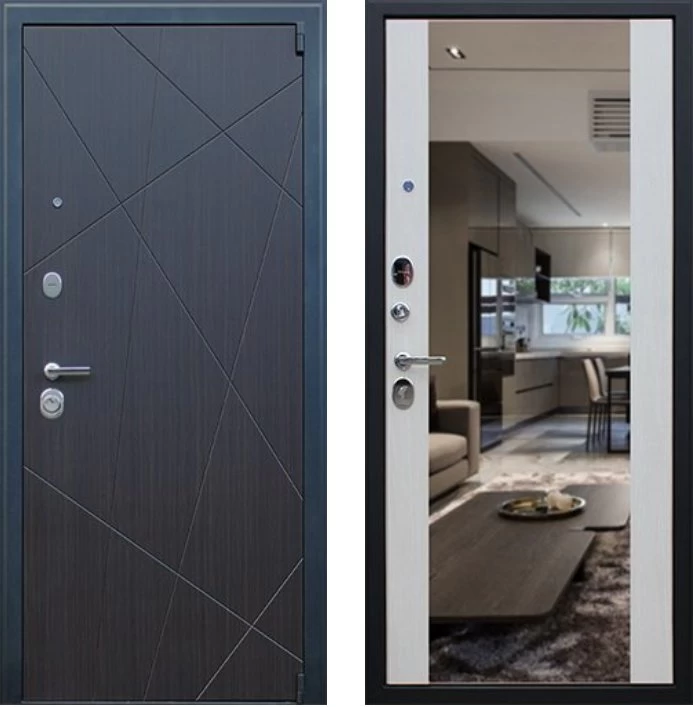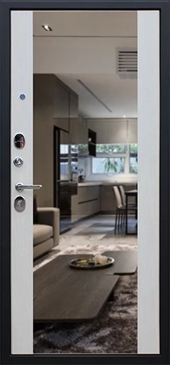 Надежная входная Дверь Вектор с зеркалом премиум класса по цене 49 125 руб. Большая толщина стали защитит от проникновения в ваш дом, квартиру или коттедж. Используется очень качественная фурнитура: замки, цилиндры, ручки, защелки. Покрытие и отделка двери изготовлено под внимательным контролем производителя. Дверь имеет долгий срок службы и гарантию.