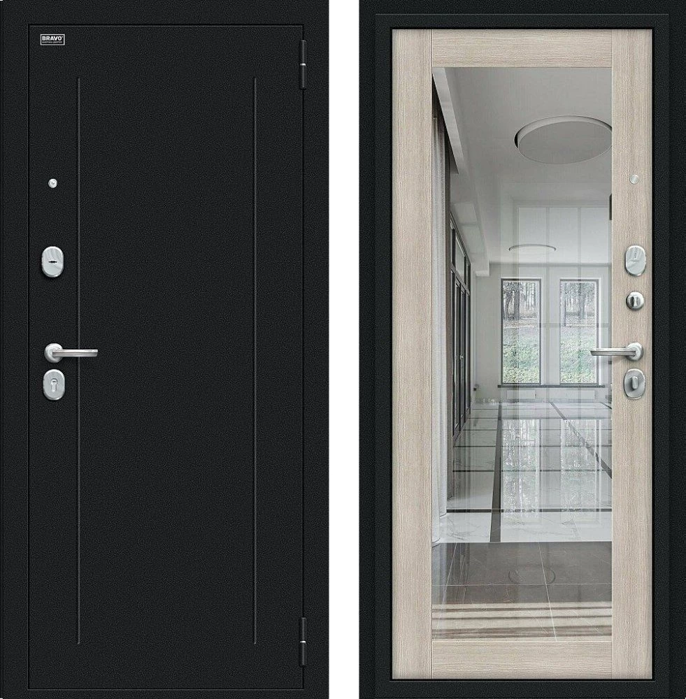 Надежная входная Дверь Браво Флэш Букле черное/Cappuccino Veralinga премиум класса по цене 32 925 руб. Большая толщина стали защитит от проникновения в ваш дом, квартиру или коттедж. Используется очень качественная фурнитура: замки, цилиндры, ручки, защелки. Покрытие и отделка двери изготовлено под внимательным контролем производителя. Дверь имеет долгий срок службы и гарантию.