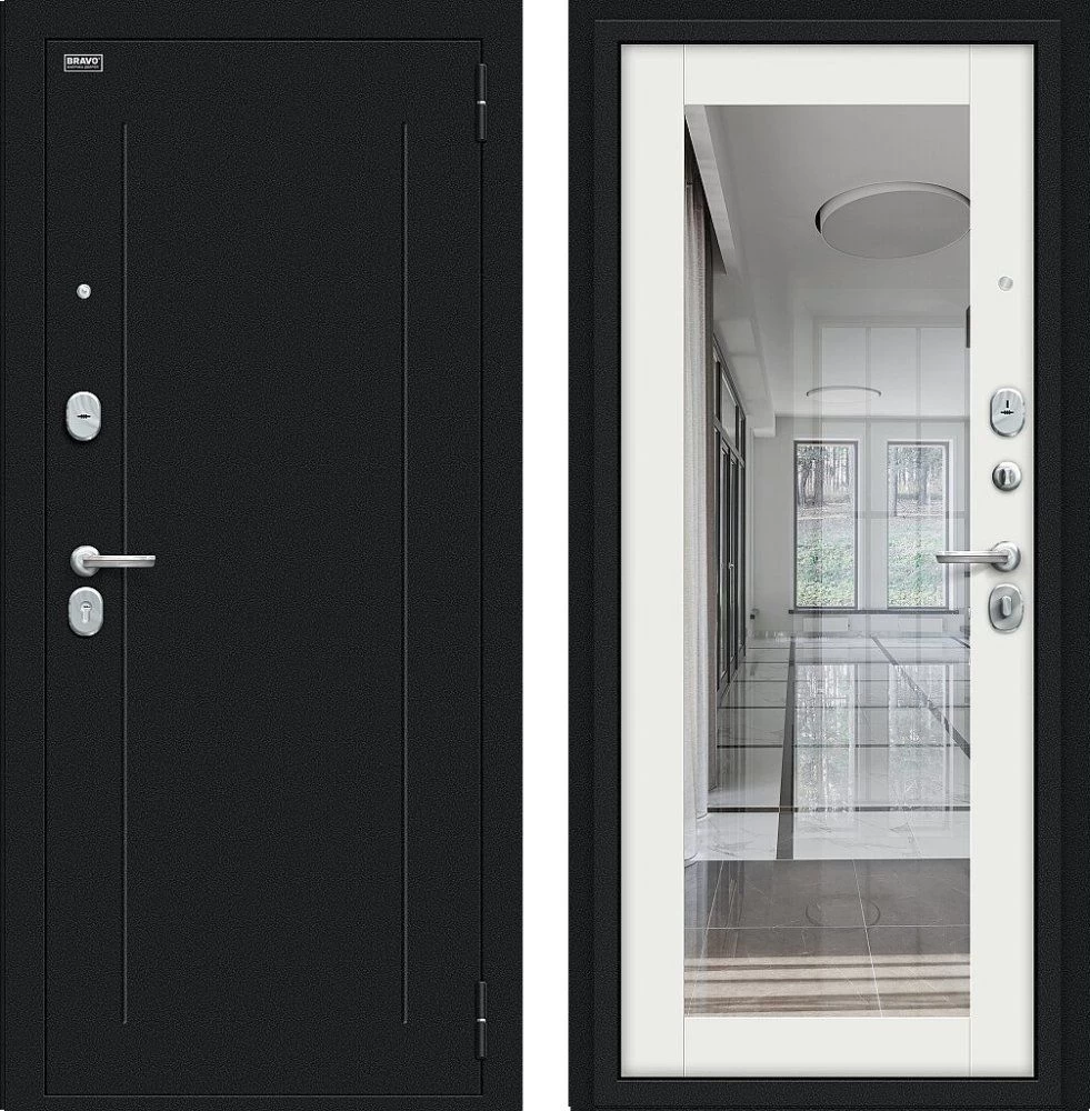 Надежная входная Дверь Браво Флэш Букле черное/Off-white премиум класса по цене 33 875 руб. Большая толщина стали защитит от проникновения в ваш дом, квартиру или коттедж. Используется очень качественная фурнитура: замки, цилиндры, ручки, защелки. Покрытие и отделка двери изготовлено под внимательным контролем производителя. Дверь имеет долгий срок службы и гарантию.