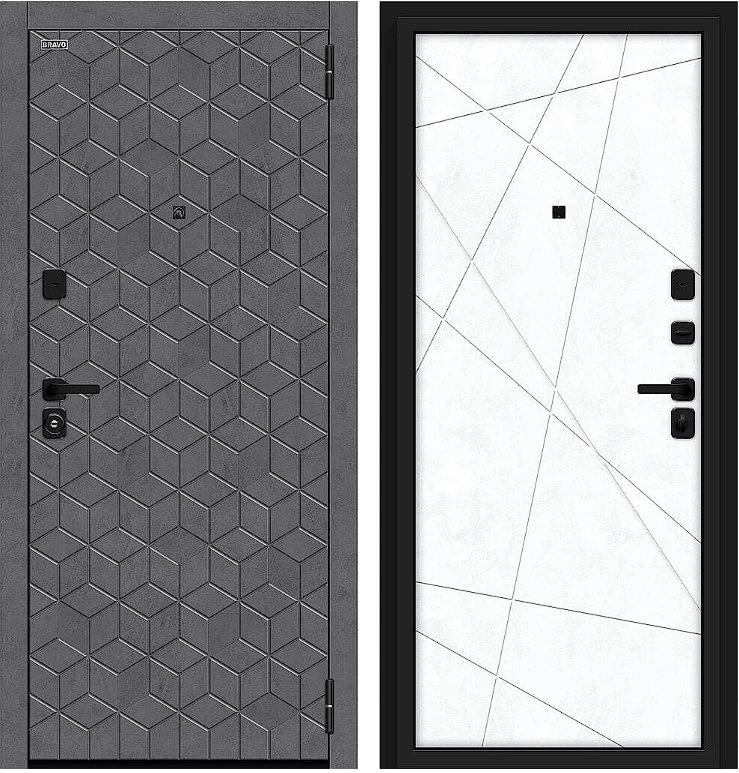 Надежная входная Дверь Браво Кьюб/SBlack Slate Art/Snow Art премиум класса по цене 39 325 руб. Большая толщина стали защитит от проникновения в ваш дом, квартиру или коттедж. Используется очень качественная фурнитура: замки, цилиндры, ручки, защелки. Покрытие и отделка двери изготовлено под внимательным контролем производителя. Дверь имеет долгий срок службы и гарантию.