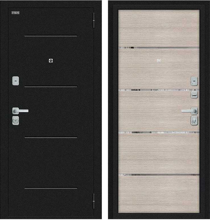 Надежная входная Дверь Браво Лайн/BChrome Букле черное/Cappuccino Melinga премиум класса по цене 31 675 руб. Большая толщина стали защитит от проникновения в ваш дом, квартиру или коттедж. Используется очень качественная фурнитура: замки, цилиндры, ручки, защелки. Покрытие и отделка двери изготовлено под внимательным контролем производителя. Дверь имеет долгий срок службы и гарантию.