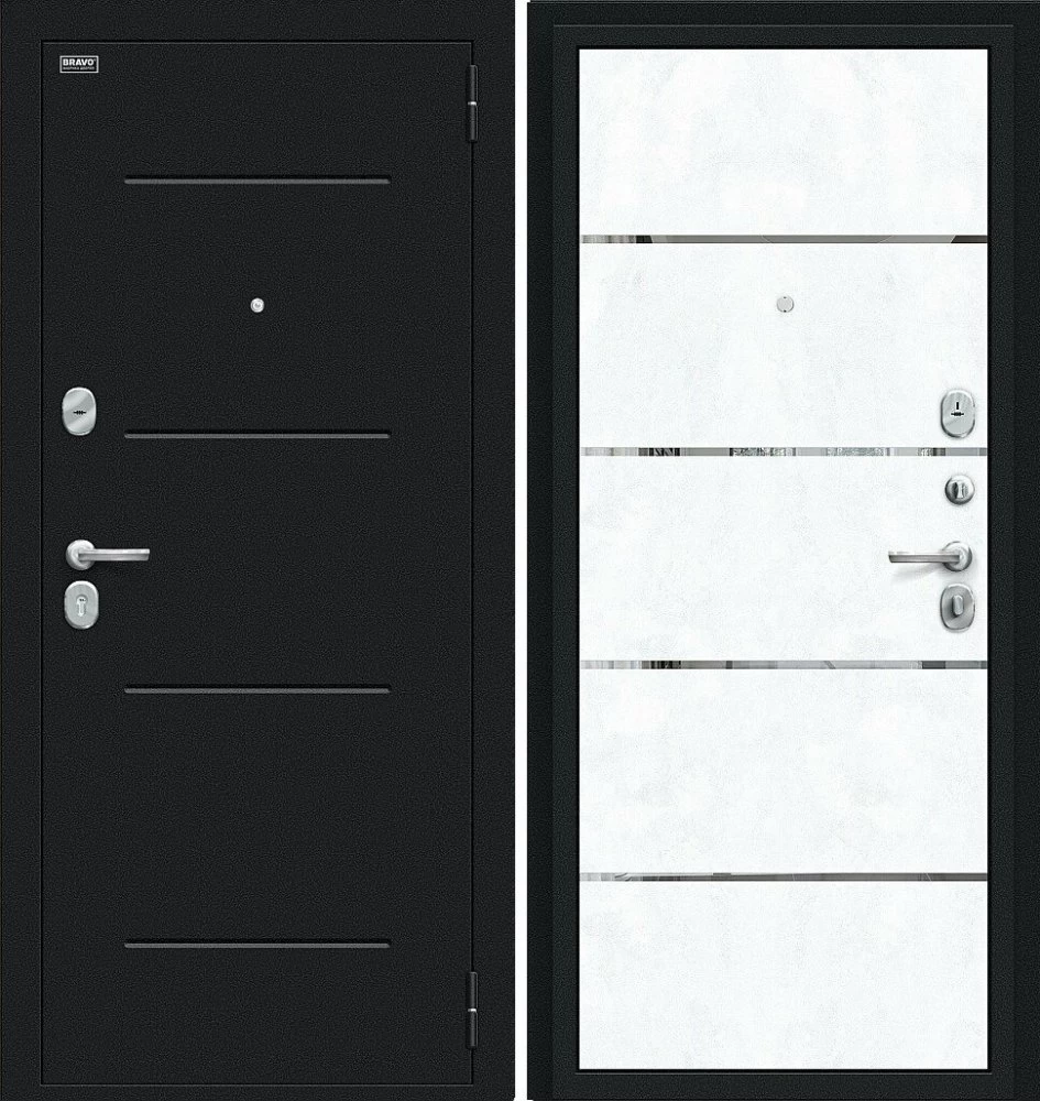 Надежная входная Дверь Браво Лайн Букле черное/Snow Art премиум класса по цене 30 045 руб. Большая толщина стали защитит от проникновения в ваш дом, квартиру или коттедж. Используется очень качественная фурнитура: замки, цилиндры, ручки, защелки. Покрытие и отделка двери изготовлено под внимательным контролем производителя. Дверь имеет долгий срок службы и гарантию.