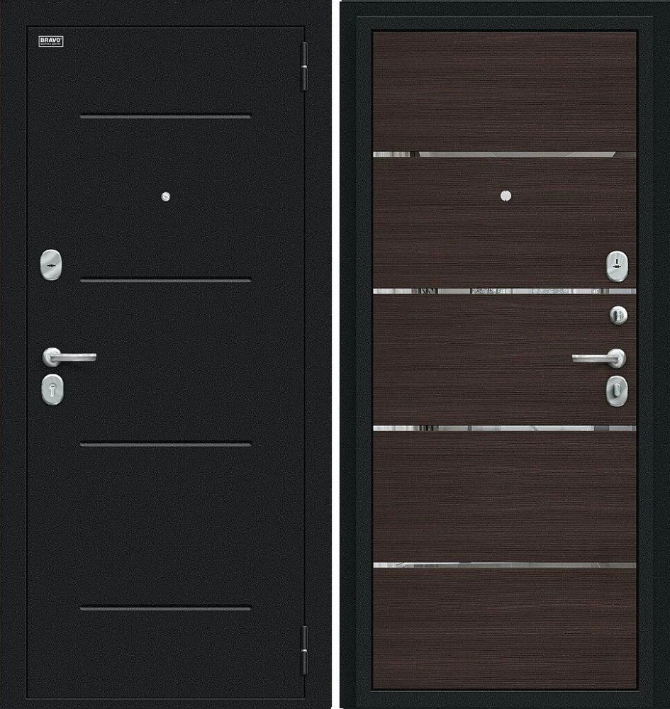 Надежная входная Дверь Браво Лайн Букле черное/Wenge Veralinga премиум класса по цене 30 045 руб. Большая толщина стали защитит от проникновения в ваш дом, квартиру или коттедж. Используется очень качественная фурнитура: замки, цилиндры, ручки, защелки. Покрытие и отделка двери изготовлено под внимательным контролем производителя. Дверь имеет долгий срок службы и гарантию.