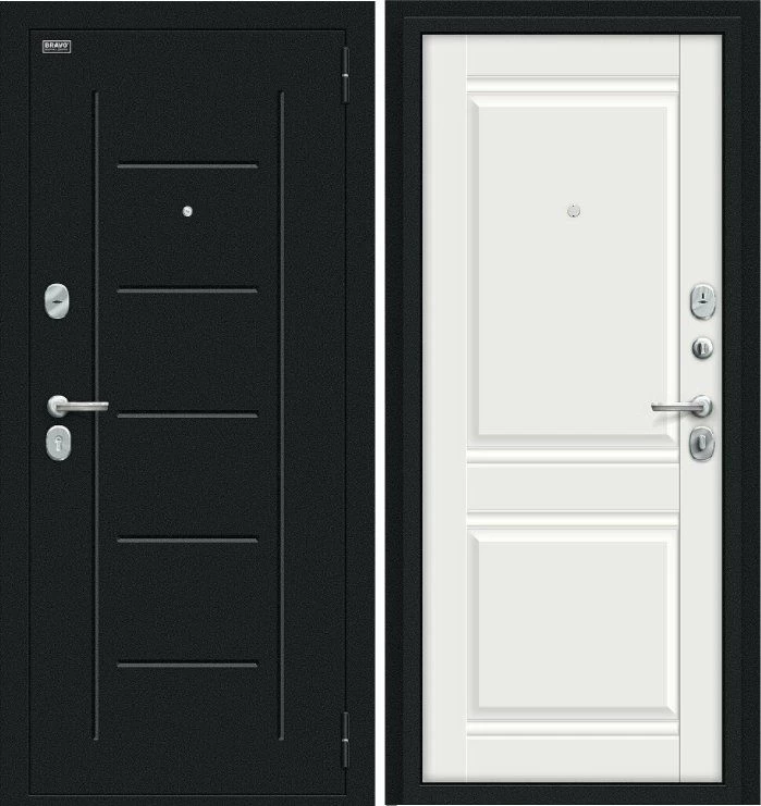 Надежная входная Дверь Браво Некст Kale Букле черное/Off-white премиум класса по цене 36 625 руб. Большая толщина стали защитит от проникновения в ваш дом, квартиру или коттедж. Используется очень качественная фурнитура: замки, цилиндры, ручки, защелки. Покрытие и отделка двери изготовлено под внимательным контролем производителя. Дверь имеет долгий срок службы и гарантию.
