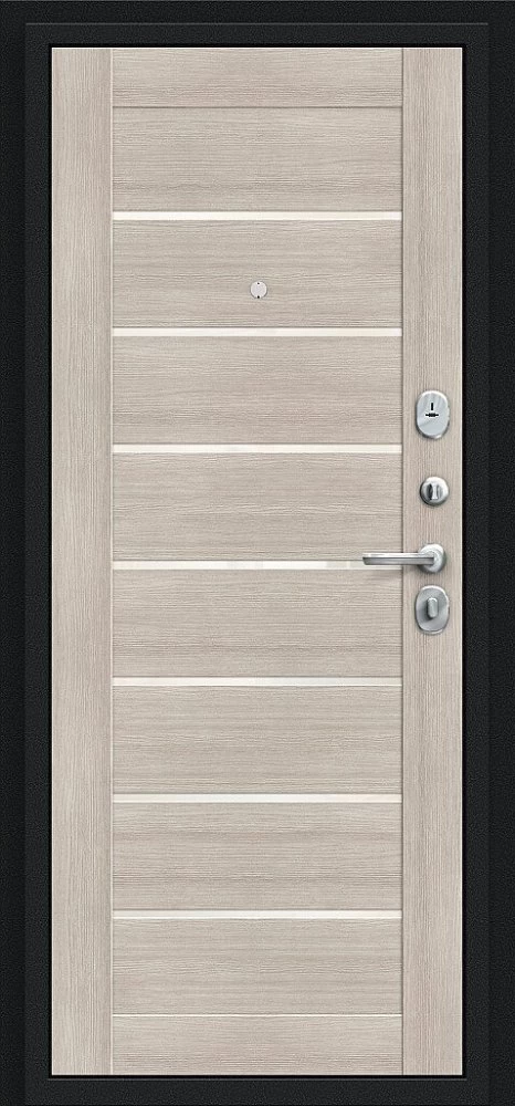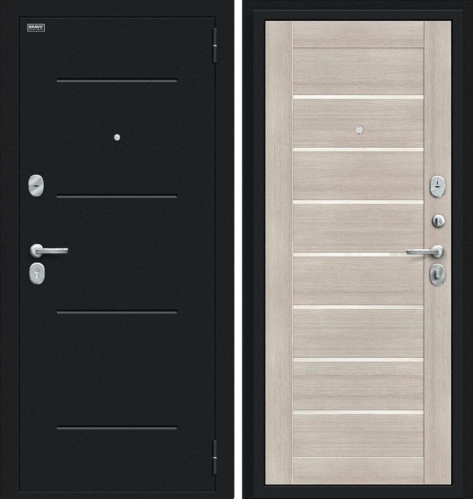 Надежная входная Дверь Браво Техно Букле черное/Cappuccino Veralinga премиум класса по цене 31 325 руб. Большая толщина стали защитит от проникновения в ваш дом, квартиру или коттедж. Используется очень качественная фурнитура: замки, цилиндры, ручки, защелки. Покрытие и отделка двери изготовлено под внимательным контролем производителя. Дверь имеет долгий срок службы и гарантию.
