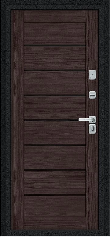 Дизайнерская входная Дверь Браво Thermo Техно Д2/BChrome Букле черное/Wenge Melinga класса Люкс с несколькими листами стали, звукоизоляцией и теплоизоляцией. Утепленный короб и полотно защитят от сквозняков и шумов. Модель не только надежная, комфортная, защищенная и высочайшего качества, но и очень красивая! Будет отлично сочетаться с интерьером дома, квартиры или офиса. Сейчас действует выгодное предложение по цене: 56 625 руб.