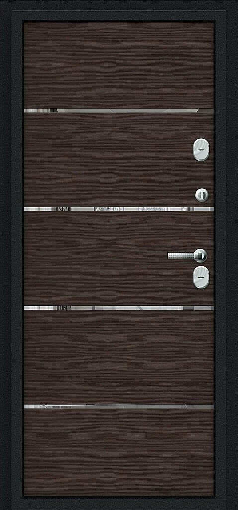 Надежная входная Входная дверь Thermo Лайн Букле черное/Wenge Veralinga BR4579 премиум класса по цене 48 616 руб. Большая толщина стали защитит от проникновения в ваш дом, квартиру или коттедж. Используется очень качественная фурнитура: замки, цилиндры, ручки, защелки. Покрытие и отделка двери изготовлено под внимательным контролем производителя. Дверь имеет долгий срок службы и гарантию.