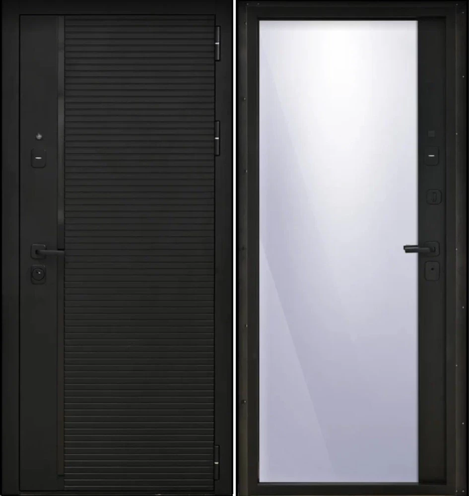 Надежная входная Дверьберг КОМФОРТ ЗЕРКАЛО ЧЕРНОЕ премиум класса по цене 46 875 руб. Большая толщина стали защитит от проникновения в ваш дом, квартиру или коттедж. Используется очень качественная фурнитура: замки, цилиндры, ручки, защелки. Покрытие и отделка двери изготовлено под внимательным контролем производителя. Дверь имеет долгий срок службы и гарантию.