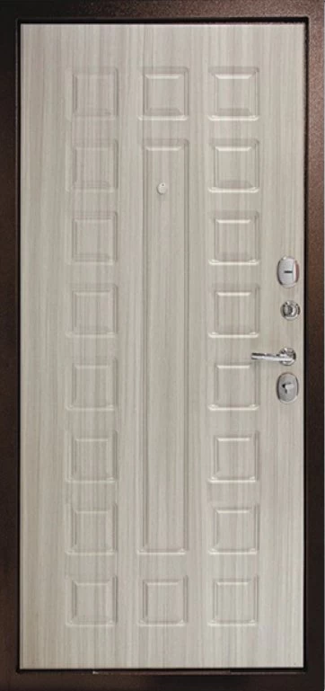 Надежная входная Дверь Рубикон 1 Медь Сандал белый премиум класса по цене 32 795 руб. Большая толщина стали защитит от проникновения в ваш дом, квартиру или коттедж. Используется очень качественная фурнитура: замки, цилиндры, ручки, защелки. Покрытие и отделка двери изготовлено под внимательным контролем производителя. Дверь имеет долгий срок службы и гарантию.