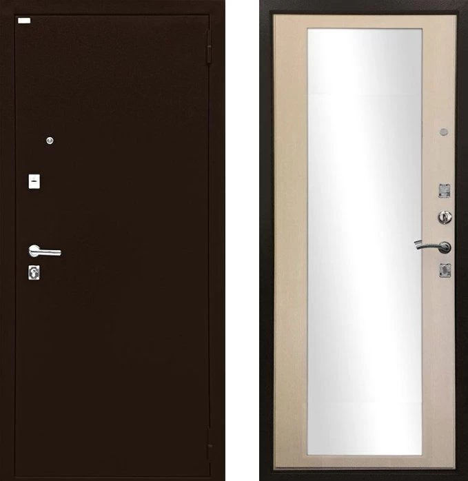 Надежная входная Дверь Ратибор Люкс Зеркало Экодуб премиум класса по цене 31 075 руб. Большая толщина стали защитит от проникновения в ваш дом, квартиру или коттедж. Используется очень качественная фурнитура: замки, цилиндры, ручки, защелки. Покрытие и отделка двери изготовлено под внимательным контролем производителя. Дверь имеет долгий срок службы и гарантию.