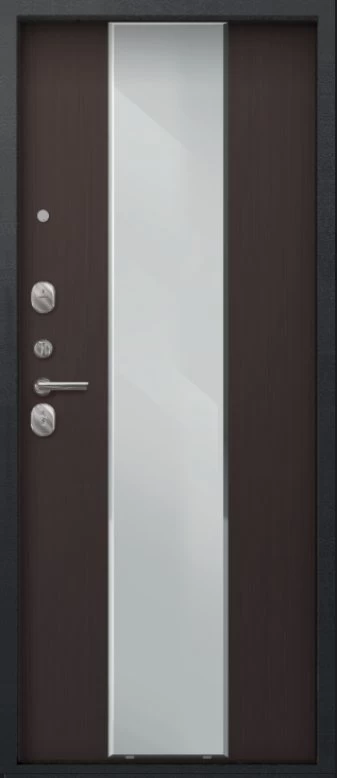 Надежная входная Дверь A-04 черный сатин - лиственница тёмная зеркало премиум класса по цене 34 075 руб. Большая толщина стали защитит от проникновения в ваш дом, квартиру или коттедж. Используется очень качественная фурнитура: замки, цилиндры, ручки, защелки. Покрытие и отделка двери изготовлено под внимательным контролем производителя. Дверь имеет долгий срок службы и гарантию.