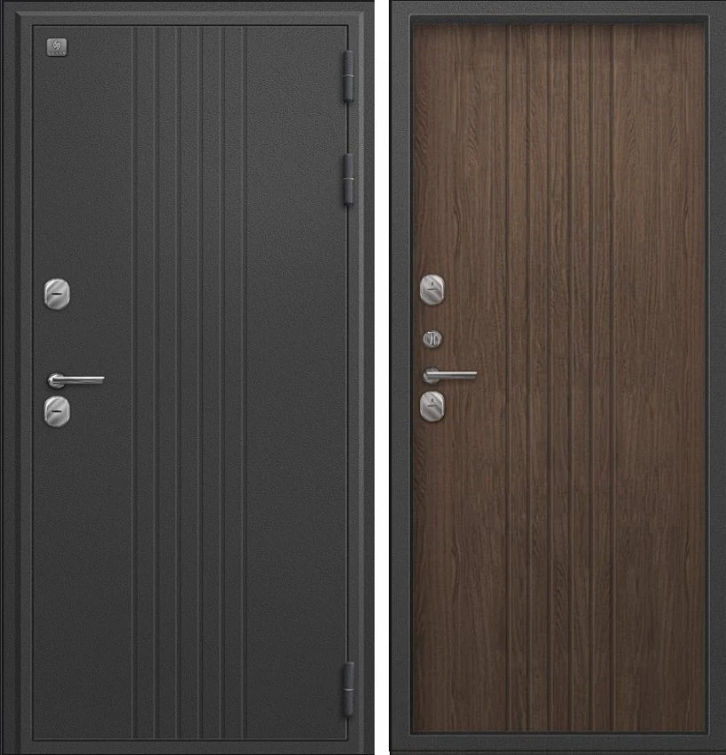 Надежная входная Дверь Термо-90 графит букле - миндаль рифлёный премиум класса по цене 37 425 руб. Большая толщина стали защитит от проникновения в ваш дом, квартиру или коттедж. Используется очень качественная фурнитура: замки, цилиндры, ручки, защелки. Покрытие и отделка двери изготовлено под внимательным контролем производителя. Дверь имеет долгий срок службы и гарантию.