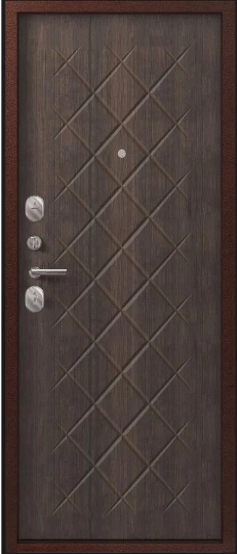 Надежная входная Дверь V-02 медь антик - венге премиум класса по цене 36 825 руб. Большая толщина стали защитит от проникновения в ваш дом, квартиру или коттедж. Используется очень качественная фурнитура: замки, цилиндры, ручки, защелки. Покрытие и отделка двери изготовлено под внимательным контролем производителя. Дверь имеет долгий срок службы и гарантию.