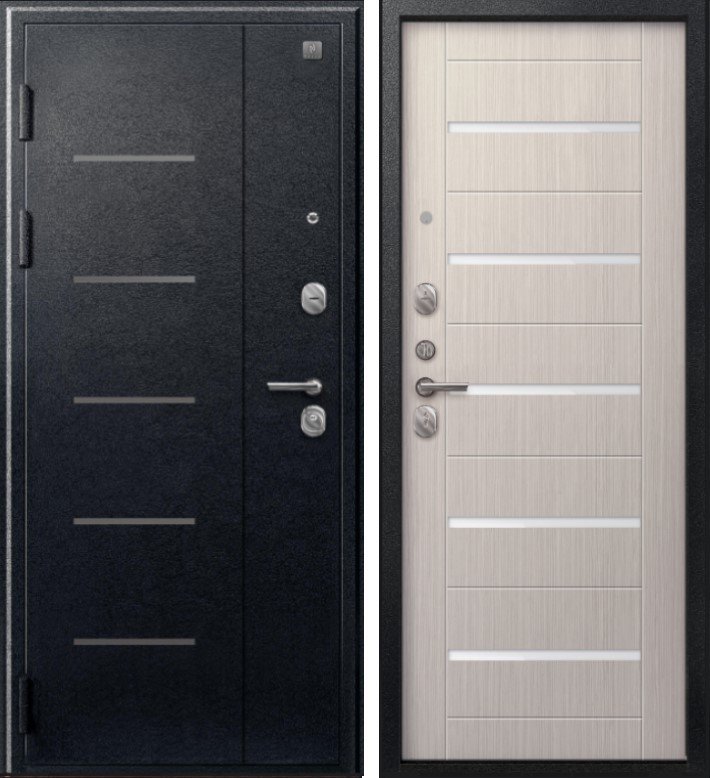 Надежная входная Дверь V-05 Черный муар - Лиственница светлая премиум класса по цене 41 975 руб. Большая толщина стали защитит от проникновения в ваш дом, квартиру или коттедж. Используется очень качественная фурнитура: замки, цилиндры, ручки, защелки. Покрытие и отделка двери изготовлено под внимательным контролем производителя. Дверь имеет долгий срок службы и гарантию.