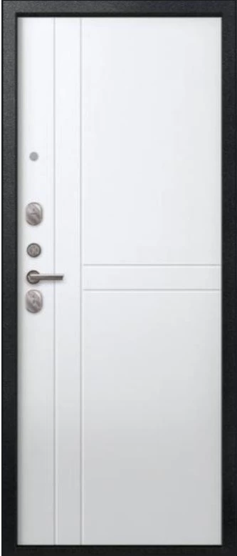 Надежная входная Дверь V-06 Черный муар - Белый премиум класса по цене 38 825 руб. Большая толщина стали защитит от проникновения в ваш дом, квартиру или коттедж. Используется очень качественная фурнитура: замки, цилиндры, ручки, защелки. Покрытие и отделка двери изготовлено под внимательным контролем производителя. Дверь имеет долгий срок службы и гарантию.