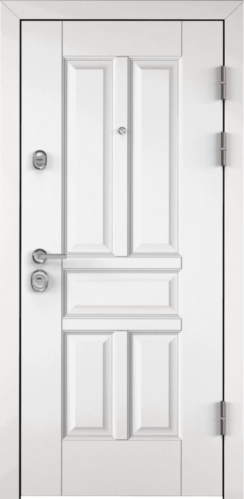 Надежная входная Дверь Цербер 3К Чёрный муар Мистраль Белый Сменная панель премиум класса по цене 42 475 руб. Большая толщина стали защитит от проникновения в ваш дом, квартиру или коттедж. Используется очень качественная фурнитура: замки, цилиндры, ручки, защелки. Покрытие и отделка двери изготовлено под внимательным контролем производителя. Дверь имеет долгий срок службы и гарантию.